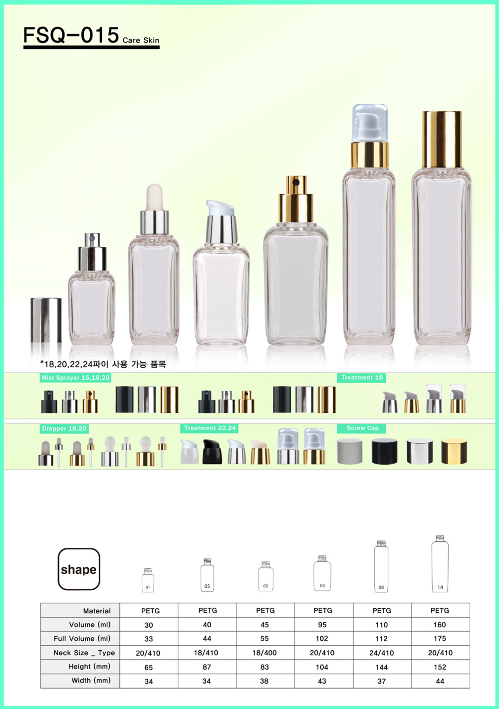 FSQ-015_PETG 40ml 사각용기720원+캡500원(후가공별도) 40ml